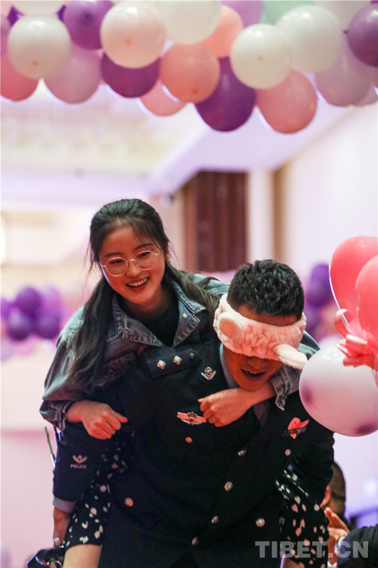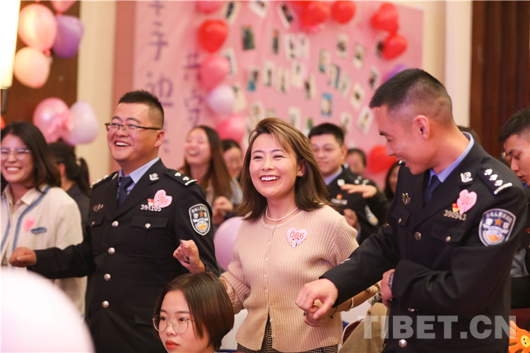 活動過程中,總站形象宣傳片《我是誰》,向女嘉賓們展現(xiàn)了西藏移民管理警察的職業(yè)特點,使女嘉賓對民警工作職責(zé)產(chǎn)生了初步的認(rèn)識。在主持人的引導(dǎo)下,精彩的才藝展示和豐富的游戲環(huán)節(jié)很快將現(xiàn)場氣氛推向一個接一個的高潮?;佑螒颉盃渴譅繍邸薄靶挠徐`犀”“守護(hù)愛情”“唯愛接力”通過聆聽詩句抓緊手指、借助比劃你問我答,相互協(xié)助完成任務(wù)等方式增進(jìn)了男女嘉賓之間的了解和默契,促進(jìn)了相互之間更好交流。男女嘉賓才藝表演和日喀則邊境管理支隊1753樂隊送上的精彩曲目,令活動現(xiàn)場青春洋溢。最終,18對男女嘉賓互生情愫,牽手成功,36對交換聯(lián)系方式,開啟更加深入的幸福交流。