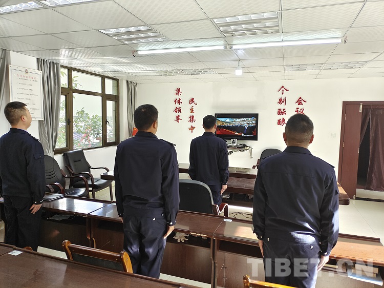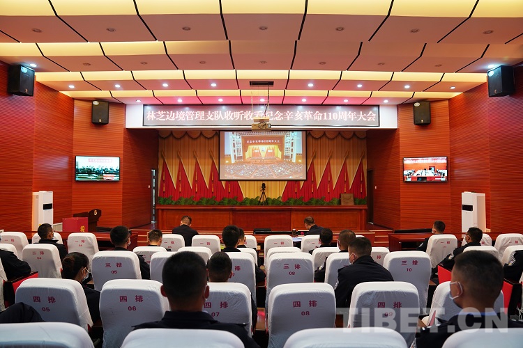 圖為林芝邊境管理支隊(duì)朗縣邊境管理大隊(duì)民警觀看紀(jì)念辛亥革命110周年大會(huì)直播 攝影:楊子