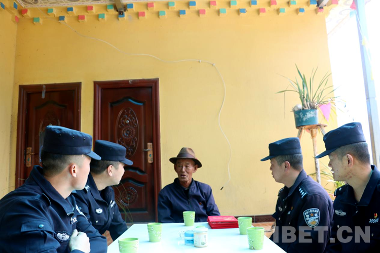 金秋時節(jié),秋高氣爽,10月14日上午,上察隅邊境派出所的民警們一大早將前幾日購買的慰問品,裝到單位車上,準備前往轄區(qū)米古村老黨員卡布羅的家,給他送重陽節(jié)的暖意問候。當看到邊境派出所的民警到家中時,年近八旬的卡布羅老人熱情地招呼民警們進屋坐下,并為民警們倒上熱騰騰的酥油茶。