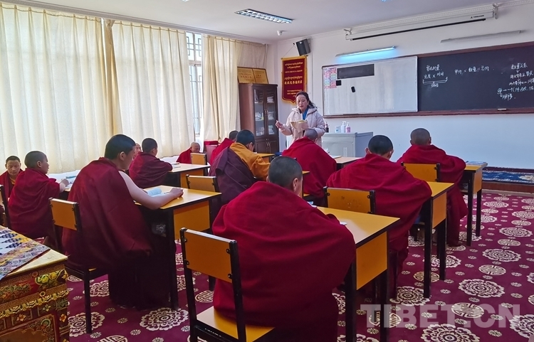 圖為佛學院學員在學習基礎(chǔ)文化知識 攝影:王淑