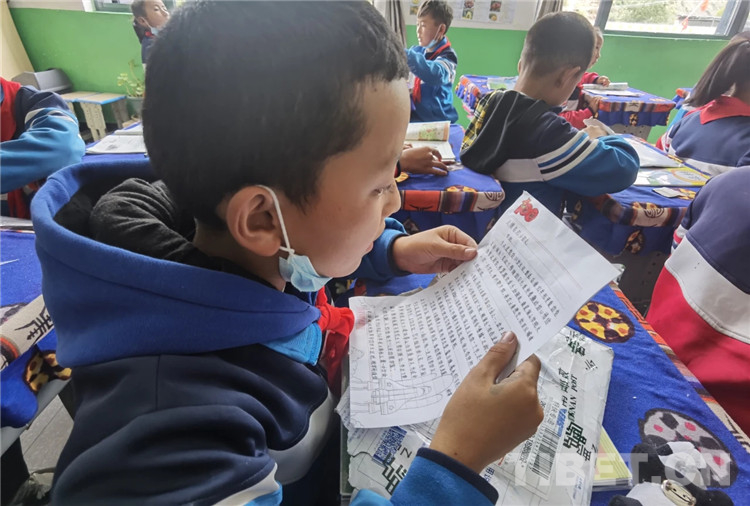 浪卡子縣卡熱鄉(xiāng)完小學生參與“滇藏、湘藏千里傳書信、學黨史”活動。圖片由浪卡子縣供圖