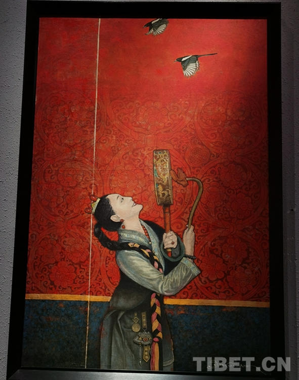 此次展覽共有39位藝術(shù)家的70多幅作品展。藝術(shù)家們?cè)诶^承西藏傳統(tǒng)的藝術(shù)形式上,利用西藏特殊元素引入各種畫種之中,并引入新的題材,讓其變得十分廣泛,同時(shí)也融合了油畫、水墨畫、水彩、雕塑等。