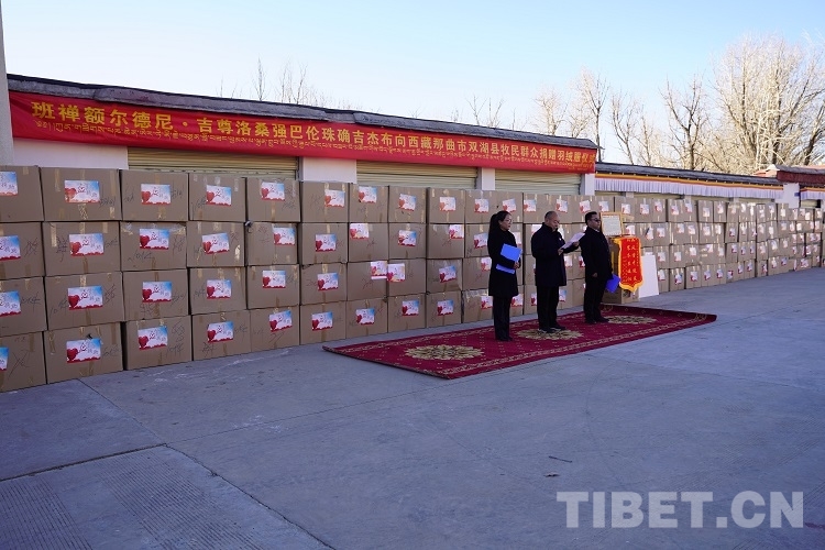 為表達對基層牧民群眾的體恤和關(guān)心,進一步提高基層牧民群眾的獲得感、幸福感,班禪決定以個人名義向雙湖縣從事牧業(yè)生產(chǎn)的牧民捐贈2000件防寒衣物。12月6日,在日喀則市德慶·格桑頗章院內(nèi)舉行了捐贈儀式,將這批防寒衣物交至雙湖縣。