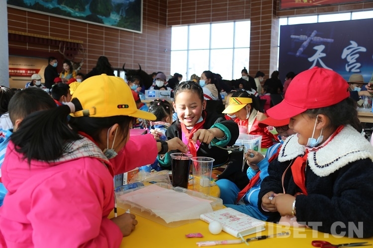 西藏自治區(qū)拉薩市西藏自然科學(xué)博物館內(nèi),在熱巴舞的歡聲律動和“液氮火箭”科普實驗的“飛天掠影”中,來自拉薩市第一小學(xué)和拉薩江蘇實驗中學(xué)的80名學(xué)生共同觀看了“天宮課堂”連線直播,聆聽來自空間站的親切聲音,與中國空間站內(nèi)的航天員“零距離”同步“天宮課堂”科學(xué)實驗操作。