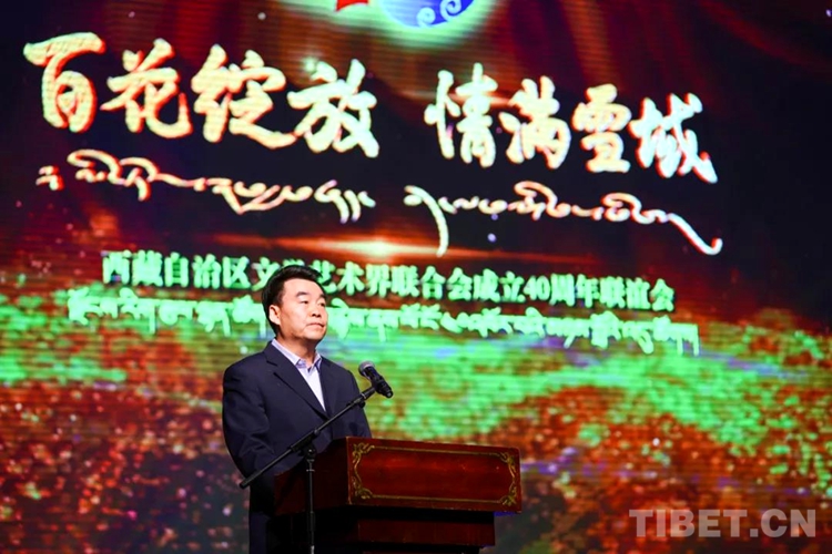 西藏自治區(qū)黨委常委、宣傳部部長汪海洲出席聯(lián)誼會并講話,西藏自治區(qū)文聯(lián)黨組書記、副主席段勝前致開幕詞,西藏自治區(qū)副主席多吉次珠,西藏自治區(qū)政協(xié)副主席、區(qū)文聯(lián)主席扎西達娃等相關(guān)領(lǐng)導及西藏自治區(qū)各有關(guān)廳局、社團組織代表、7地市文聯(lián)、區(qū)文聯(lián)11個文藝家協(xié)會的主席團成員、老藝術(shù)家代表、“文藝兩新”組織代表等200多人參加活動。中國文聯(lián)、中國作協(xié)、各兄弟省、市、自治區(qū)文聯(lián)向區(qū)文聯(lián)成立40周年發(fā)來賀信。