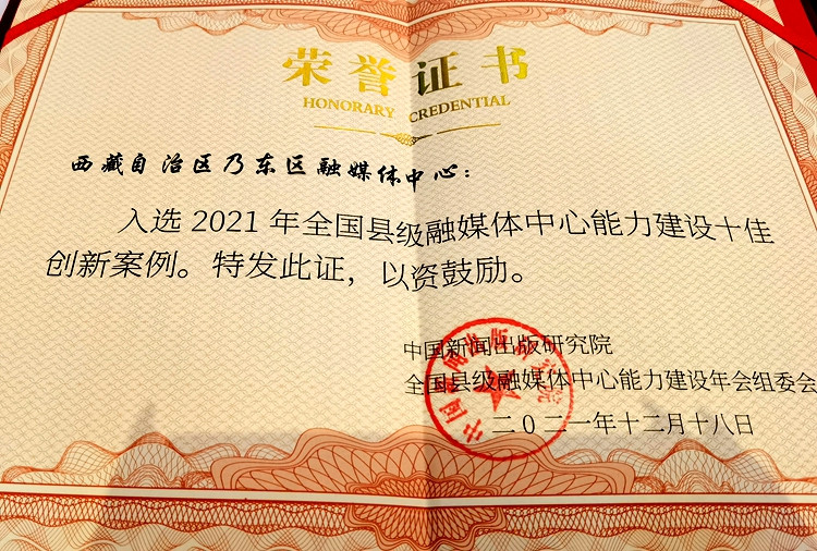 中國(guó)西藏網(wǎng)訊 12月18日,第二屆全國(guó)縣級(jí)融媒體中心能力建設(shè)年會(huì)在成都市雙流區(qū)舉行。西藏自治區(qū)山南市乃東區(qū)融媒體中心入選“2021年全國(guó)縣級(jí)融媒體中心能力建設(shè)十佳創(chuàng)新案例”。這是西藏自治區(qū)唯一獲得此獎(jiǎng)的縣(區(qū))級(jí)融媒體中心。