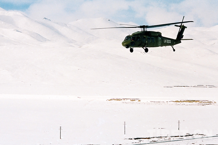 旋即,首都北京來電,中央派運輸機空投物資。1990年3月23日,銀燕展翅藏北,身為新華社西藏分社攝影記者的我,登上空投救援的大飛機跟隨采訪。不幾日,中央又電令兩架“黑鷹”直升飛機投入到緊張的抗災救災工作中。
