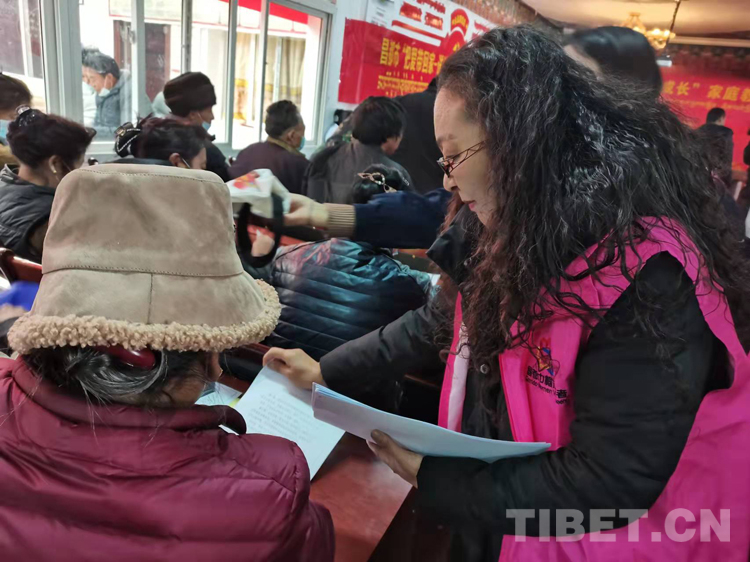 圖為工作人員為城關(guān)鎮(zhèn)四川橋社區(qū)群眾作講座
