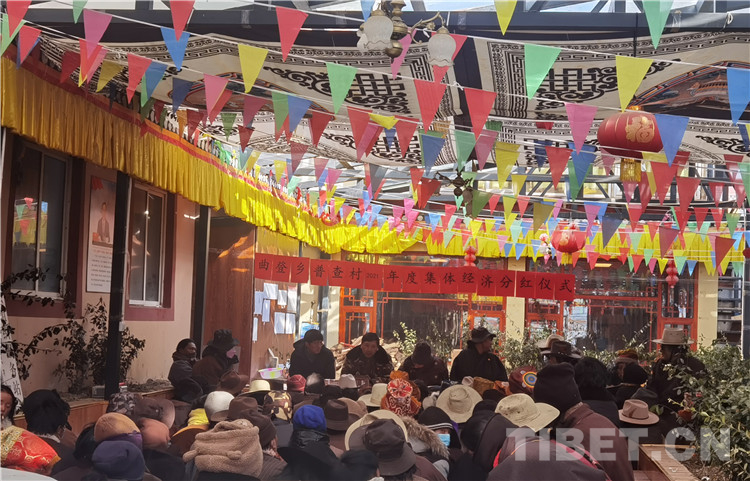 當天,曲登鄉(xiāng)政府陽光棚傳來陣陣歡聲笑語,許多牧民群眾早早來到鄉(xiāng)上,領(lǐng)取2021年普查村集體經(jīng)濟分紅。此次分紅實現(xiàn)了40萬余元的既定目標,惠及全村139戶918人。截止目前,勒通牦牛養(yǎng)殖專業(yè)合作社現(xiàn)有牦牛存欄1012多頭,2021年牦牛出欄46頭,收益分紅兌現(xiàn)403500元,全村脫貧戶每戶分紅1000元,一般農(nóng)戶每戶分紅900元,每人分紅285元。