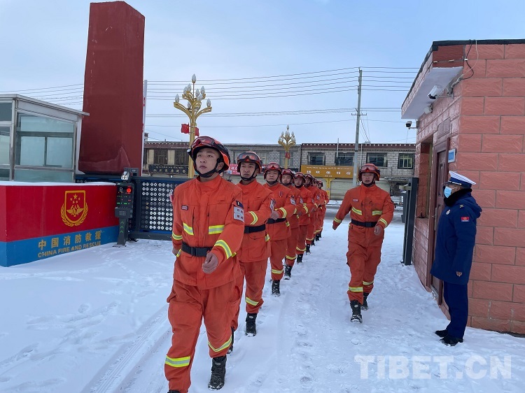 中國西藏網(wǎng)訊 晚上七點鐘,薛太文還在哨位上堅守著,他是那曲市森林消防大隊去年下隊的新消防員,這是他在這里過的第一個春節(jié)。警衛(wèi)室外面是零下三十七度的低溫,室內(nèi)在暖氣的包圍下溫暖如同春天?!鞍謰屵@會在干啥呢?應(yīng)該是在看電視吧,奶奶身體不知道這兩天怎么樣,等會下崗了給他們打個視頻吧……”正想著,大門外的車輛鳴號聲把他的思緒從家里拉了回來。薛太文趕忙沖出溫暖的警衛(wèi)室,在微微的細雪中打開了大門,板正地站好敬禮——在城區(qū)周邊巡查的隊友們回來了。