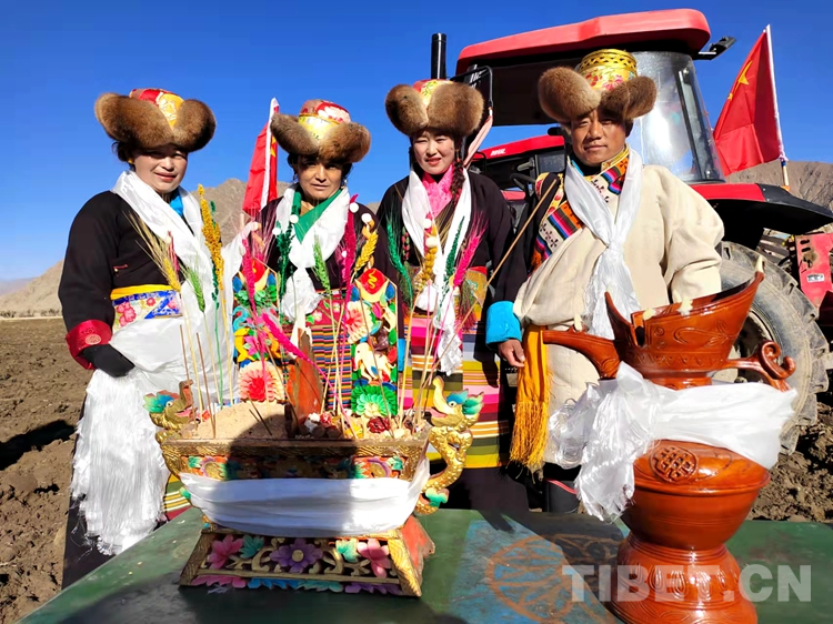 早春時(shí)節(jié),雪域高原的清晨仍沁著絲絲寒意。藍(lán)天白云下,身著整潔藏裝的農(nóng)民操作著裝扮一新的農(nóng)機(jī)設(shè)備。