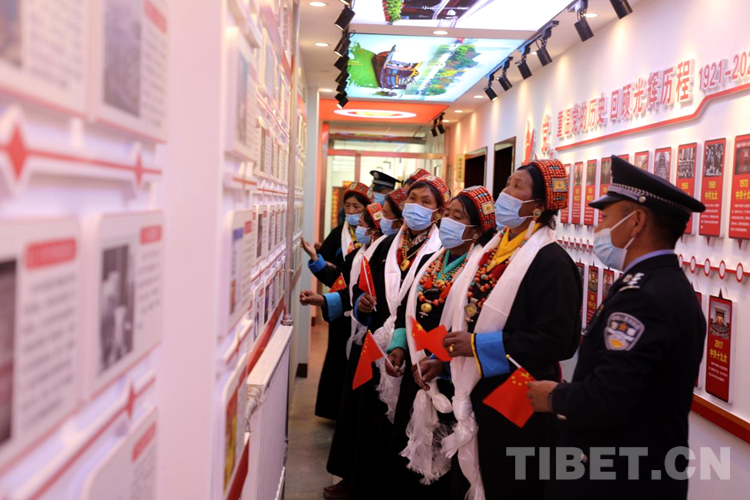 圖為邊民群眾與民警參觀九號執(zhí)勤點(diǎn)黨建活動(dòng)室 攝影:格熱