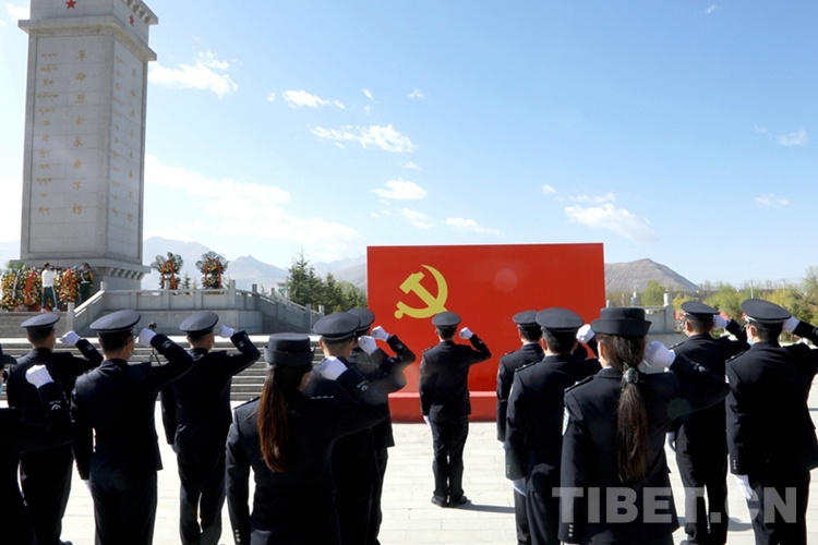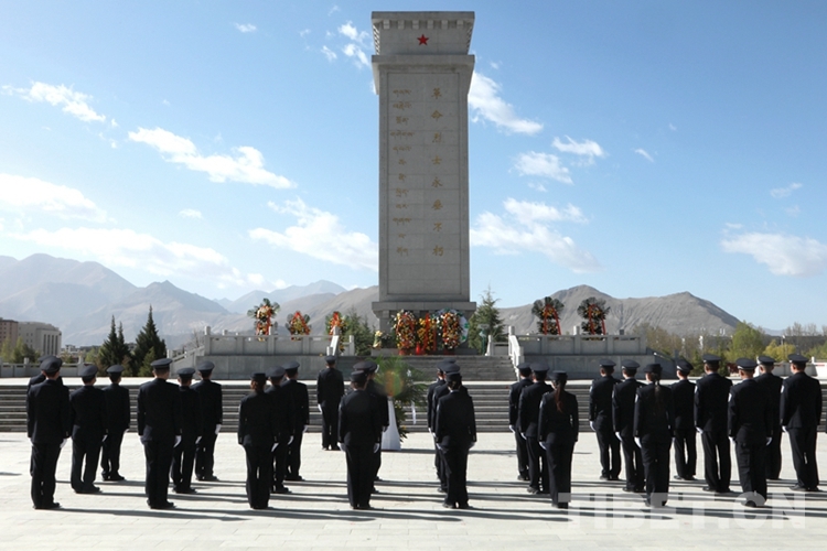 圖為西藏邊檢總站執(zhí)法調(diào)查支隊民警在拉薩烈士陵園開展祭奠活動 攝影:劉明陽