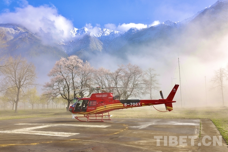 中國(guó)西藏網(wǎng)訊 云遮霧繞的早晨,青山如黛,桃花正盛。國(guó)網(wǎng)通航公司SG1151直升機(jī)機(jī)組的王磊卻沒(méi)時(shí)間欣賞這如畫的美景,一早便和同事們準(zhǔn)備今天的航巡作業(yè)。