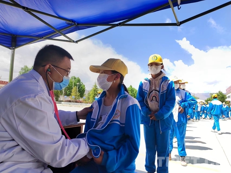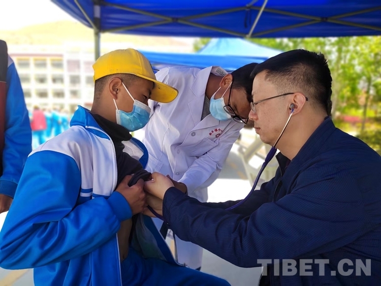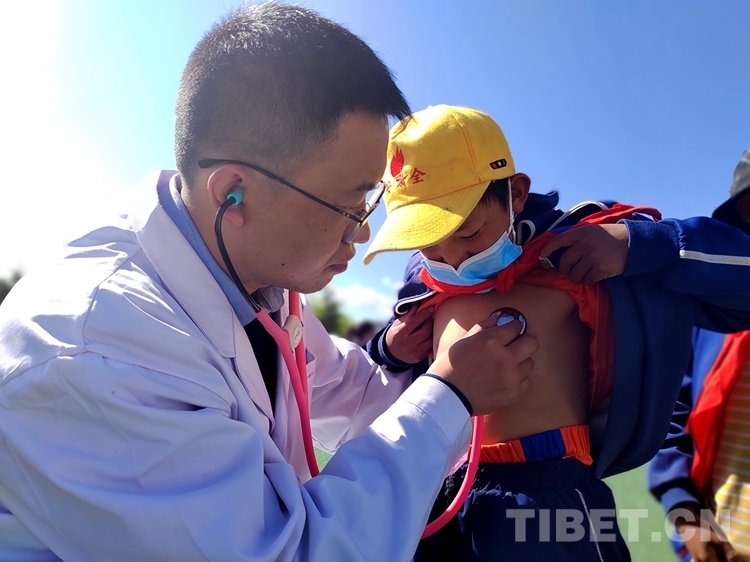 中國西藏網(wǎng)訊 4月22日,西藏自治區(qū)拉薩市曲水縣小學(xué)的操場上,600多名小學(xué)生有序站隊(duì),來自南京醫(yī)科大學(xué)第二附屬醫(yī)院“心佑工程”團(tuán)隊(duì)的醫(yī)生們,手拿聽診器,各人負(fù)責(zé)一個(gè)方陣的學(xué)生,開展初步聽診,開始了為期5天的全面篩查工作。