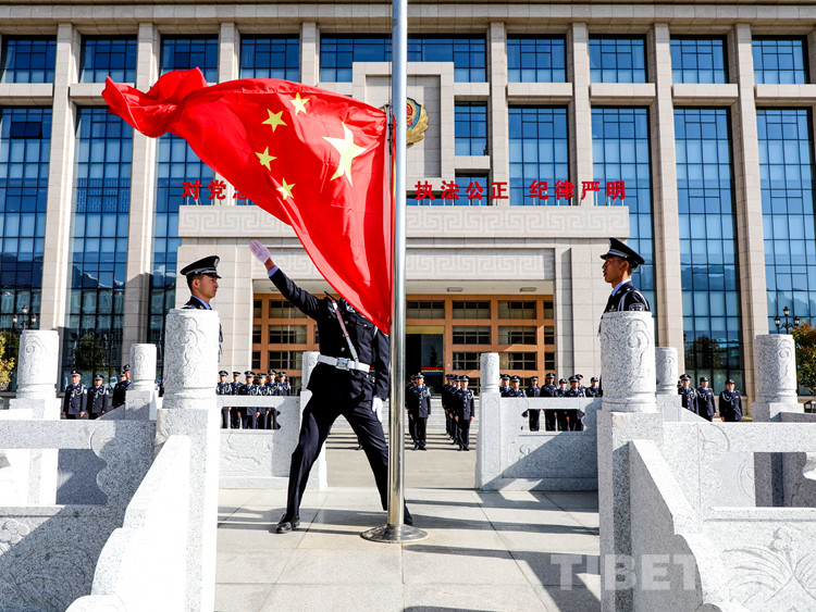 在林芝支隊(duì)機(jī)關(guān)大樓前,鮮艷的五星紅旗在雄壯的國歌聲中冉冉升起,機(jī)關(guān)全體民警警容嚴(yán)整、精神飽滿,用標(biāo)準(zhǔn)的敬禮向國旗致敬,向偉大的祖國和勞動(dòng)人民致敬。