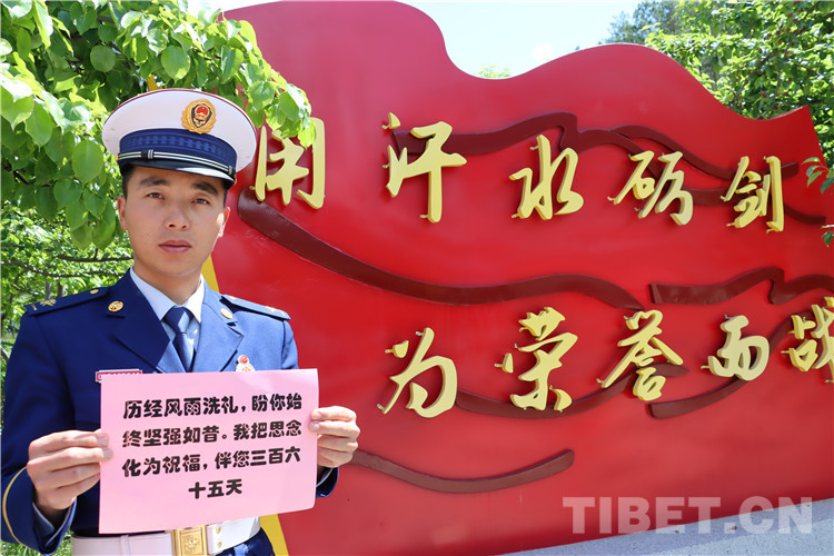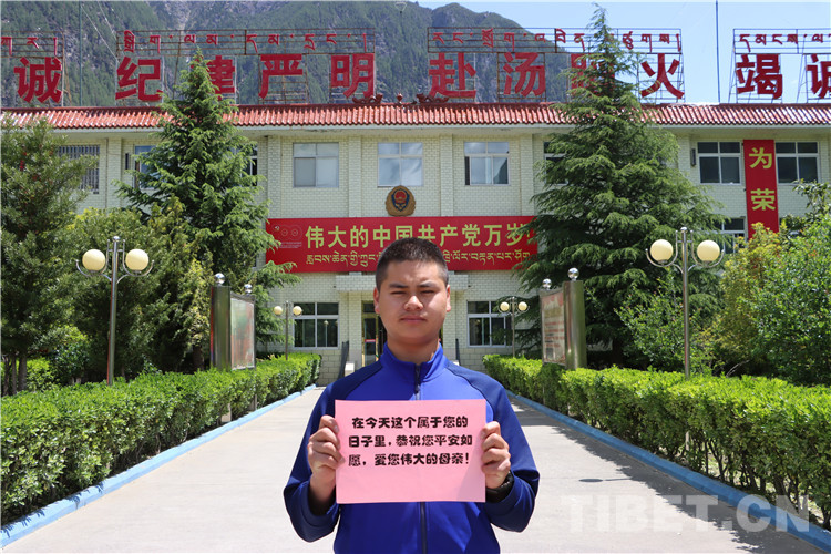 藏族消防員邊瑪桑堆對他母親說:“母親節(jié)到了,我祝媽媽節(jié)日快樂!媽媽,扎西德勒!”