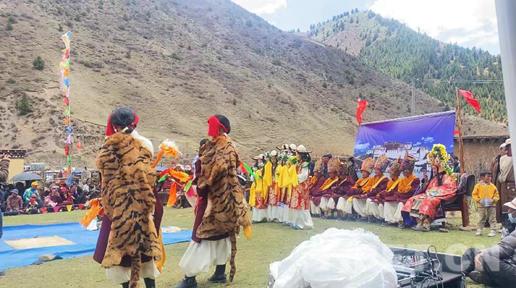 此次《諾桑王子》的表演劇本,由演員們自發(fā)組織創(chuàng)作,保留了古老的唱腔藝術(shù)和服飾藝術(shù),在原創(chuàng)基礎(chǔ)上,添加了折嘎、昌都鍋莊、康巴特色體育競技等內(nèi)容。在保護(hù)與創(chuàng)新中傳承,造就了這座村落獨特的藏戲文化。