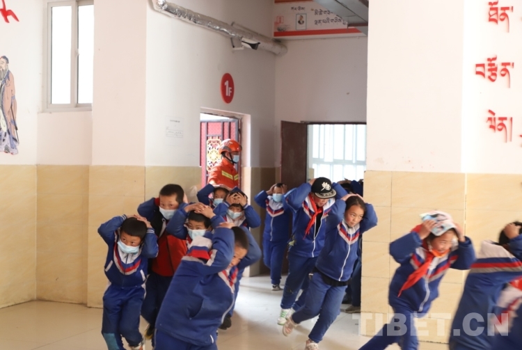 圖為左貢縣小學內(nèi)開展應急避險疏散演練