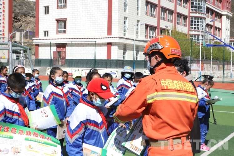 圖為昌都市森林消防支隊左貢中隊向師生們普及防災減災知識和技能