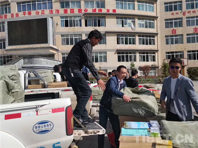 工作人員將“學(xué)習(xí)包”裝車后運(yùn)往十一縣(區(qū))