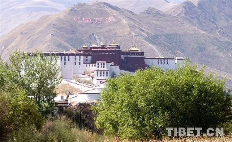 圖為從拉魯濕地看布達(dá)拉宮和“祖國萬歲”山 攝影:王媛媛