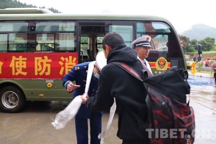圖為校方為森林消防隊員獻(xiàn)上哈達(dá)