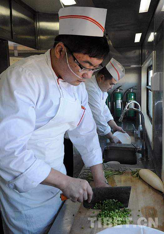 我在北京鐵路客運段京藏列車第二組的餐車里看到,列車在通過唐古拉山區(qū)段時,餐車正在為旅客提供炒菜服務。我采訪的廚師長孫冠軍告訴我,京藏列車自開通運營以來,除了像西紅柿炒雞蛋因高原沸點低而無法炒成片外,其他三四十種可口飯菜都能在列車運行中的高海拔地段完成。