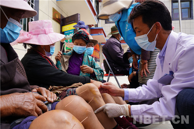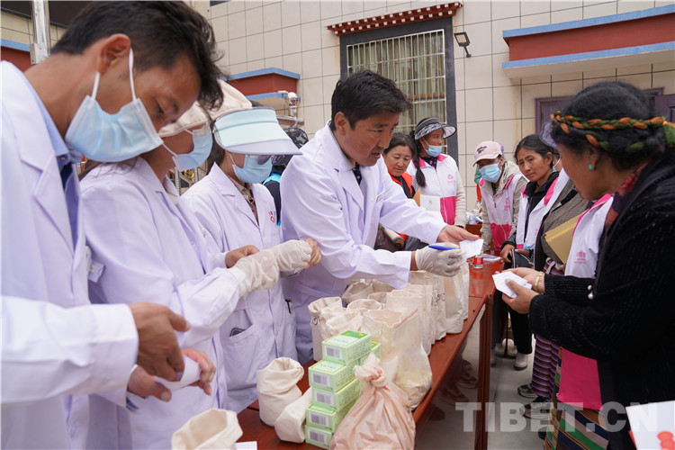 義診中,瓊結縣衛(wèi)健委(藏醫(yī)醫(yī)院)醫(yī)療健康志愿隊耐心接待每位前來咨詢的農(nóng)牧民群眾,悉心為農(nóng)牧民群眾診斷病情。