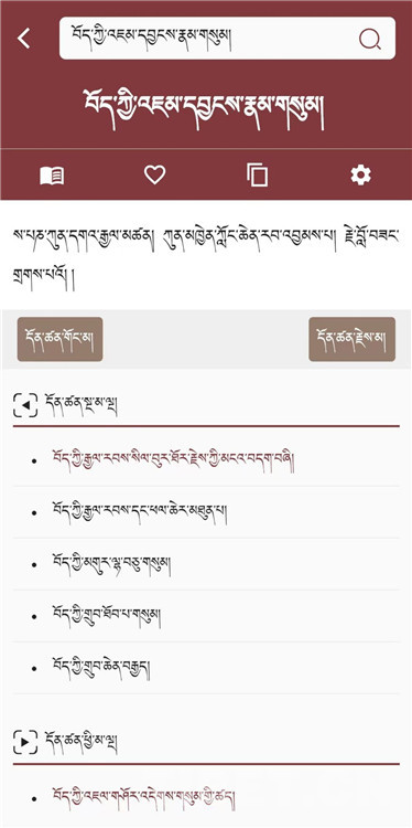《東噶藏學(xué)大辭典》APP不僅呈現(xiàn)藏文音序等紙書檢索方式,還新增詞條、全文搜索和支持*?通配符搜索等數(shù)字化檢索方式,增加了很多學(xué)習(xí)功能模塊,使辭典由查檢工具向?qū)W習(xí)工具轉(zhuǎn)變,形成了較為完整的知識服務(wù)體系。APP同時實(shí)現(xiàn)數(shù)字版、紙質(zhì)版一鍵切換,這一設(shè)計(jì)既免除用戶對手機(jī)硬件的疑慮,也契合用戶傳統(tǒng)閱讀紙書翻閱的情懷。