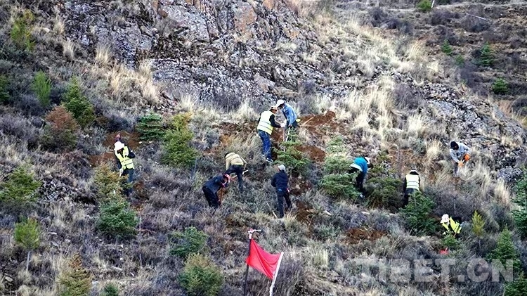 圖為2022年5月拉薩南山上工人們正在植樹(shù) 攝影:王媛媛