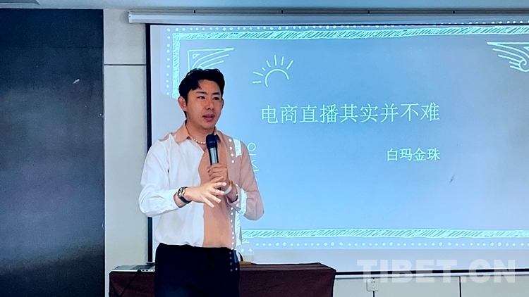 圖為西藏自治區(qū)青聯(lián)委員、拉薩市政協(xié)委員、創(chuàng)業(yè)青年網(wǎng)紅白瑪金珠講解電商直播知識和經(jīng)驗(yàn) 攝影:拉姆
