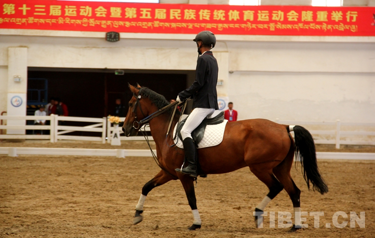 圖為馬術項目盛裝舞步比賽現(xiàn)場 攝影:德吉卓嘎