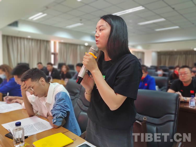 圖為2022環(huán)拉薩城自行車大賽新聞發(fā)布會(huì)現(xiàn)場(chǎng)西藏商報(bào)記者在提問(wèn) 攝影:拉姆