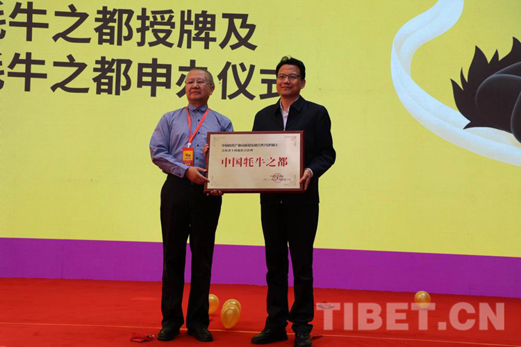 圖為7月20日在青海省玉樹(shù)藏族自治州開(kāi)幕的首屆中國(guó)(玉樹(shù))牦牛產(chǎn)業(yè)大會(huì)上,玉樹(shù)州獲得“中國(guó)牦牛之都”授牌 攝影:包利英