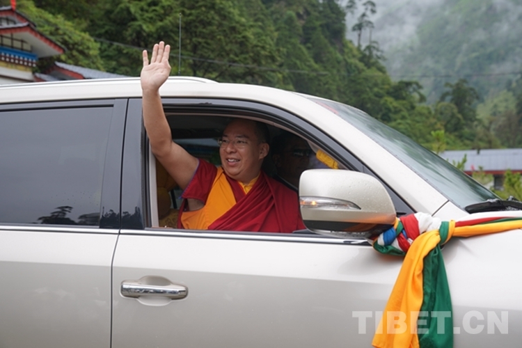 調(diào)研結(jié)束,班禪徒步走出珞瓦新村,為村口列隊(duì)歡送的信教群眾一一摸頂賜福,并給村內(nèi)所有信教群眾送上了經(jīng)過(guò)加持的金剛結(jié)、法相照片和像章。