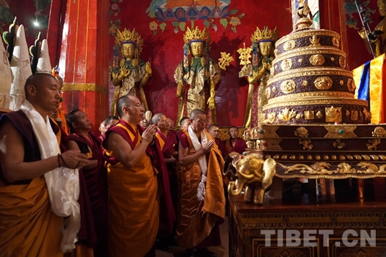 當(dāng)日,全國(guó)政協(xié)常委、中國(guó)佛教協(xié)會(huì)副會(huì)長(zhǎng)、中國(guó)佛教協(xié)會(huì)西藏分會(huì)會(huì)長(zhǎng)班禪額爾德尼?確吉杰布前往山南市隆子縣扎果寺禮佛講經(jīng)。