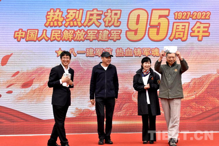 圖為圖為中國(guó)關(guān)心下一代紅偉愛國(guó)主義西藏教育基地正式簽約授牌儀式現(xiàn)場(chǎng)開國(guó)元?jiǎng)缀蟠鷤優(yōu)槊飨裾虏┪镳^贈(zèng)送簽名建軍95周年紀(jì)念封和紀(jì)念郵箋 攝影:拉姆