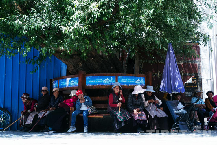 圖為拉薩市民在八廓街古老的柳蔭下小憩 攝影:鄭朔