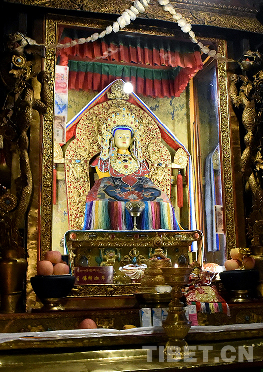 這是拉薩大昭寺供奉的松贊干布(左)和文成公主(右)的塑像(唐召明2016年6月8日攝)