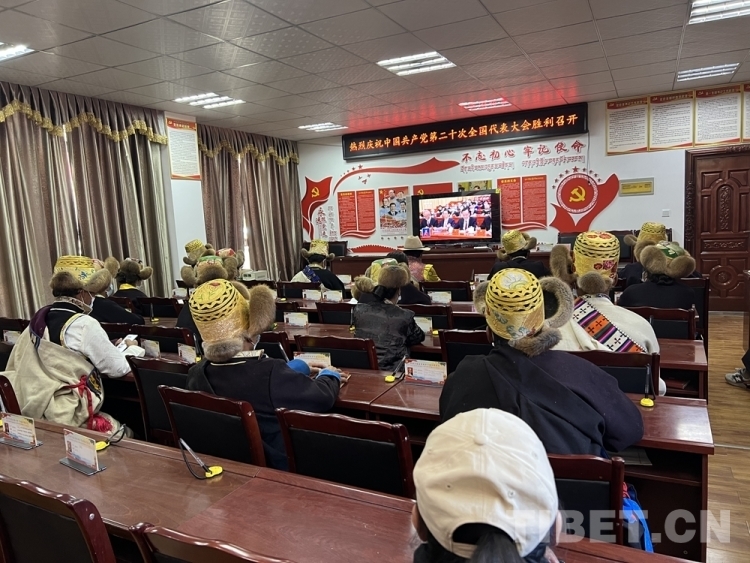 圖為西藏自治區(qū)山南市乃東區(qū)干部群眾收聽收看黨的二十大開幕會 圖片來源:藏源發(fā)布