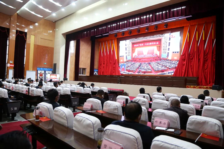 圖為山南市委禮堂內(nèi)干部群眾集中收聽(tīng)收看黨的二十大開幕盛況。