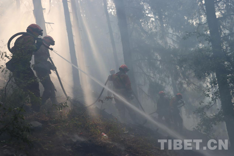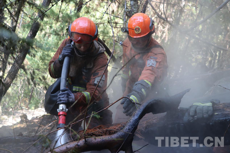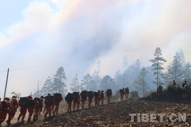 火場上,不說有感天動地的故事,但是那種“無畏火魔、不怕犧牲、舍我其誰、團結協(xié)作”的故事卻到處可見。那天,我們在接警后,第一時間趕赴現(xiàn)場,當看到一條長長的火線猶如一條蜿蜒的巨龍盤旋在空檔村山腰,火舌在大風助威下翻滾著向南側撲去時,飛哥和我各帶領10名黨員骨干以南北兩翼夾擊的陣勢迎戰(zhàn)火魔。在高達2800米的原始林區(qū),夜里溫度接近-5℃,槍頭手高琪已全身上下濕透并伴隨冰片的出現(xiàn),隱約透著讓人冷顫的寒光,顫抖的身體讓槍頭不斷左搖右擺,但他毅然肩扛槍頭,勇斗火魔。撲救完畢后,剛要準備休整,中隊接到殲滅山頂火點的任務,火情就是命令,指戰(zhàn)員背著沉重的裝備在近70-80度的亂石陡坡上,抓著樹枝一步步向上攀爬,16年兵齡的王建紅在爬山過程中使勁喘息,即使空氣中彌漫著飛舞的灰,也為吸取更多的氧氣保持體力;接近山頂時,一顆直徑約80cm的滾石從山頂滾落,體型弱小的二級消防士曹橋在緊促的避險哨音中采取緊急避險措施成功躲避,滾石與他擦肩而過,但危險的環(huán)境未能抑制他戰(zhàn)斗的決心。中隊指戰(zhàn)員暢談此次滅火作戰(zhàn)感受時,都紛紛笑言:“我們從海拔2300米打到了3700米,相當于從察隅到了拉薩?!?1日,中隊轉(zhuǎn)戰(zhàn)火場西南線,此時經(jīng)過5天的連續(xù)奮戰(zhàn),指戰(zhàn)員的思考能力和興奮的感覺消失殆盡,只剩下機械式行走的軀體,膝蓋有舊傷的戰(zhàn)斗班班長王明因為超負荷運動已疼痛難忍,但他在咬牙堅持。班長宋遠金、扎西歐珠主動擔當不畏艱險,從不到2300多米的地方,背著滅火裝備和滿滿的水桶,爬到4000米的山頂排除隱患,清理煙點。