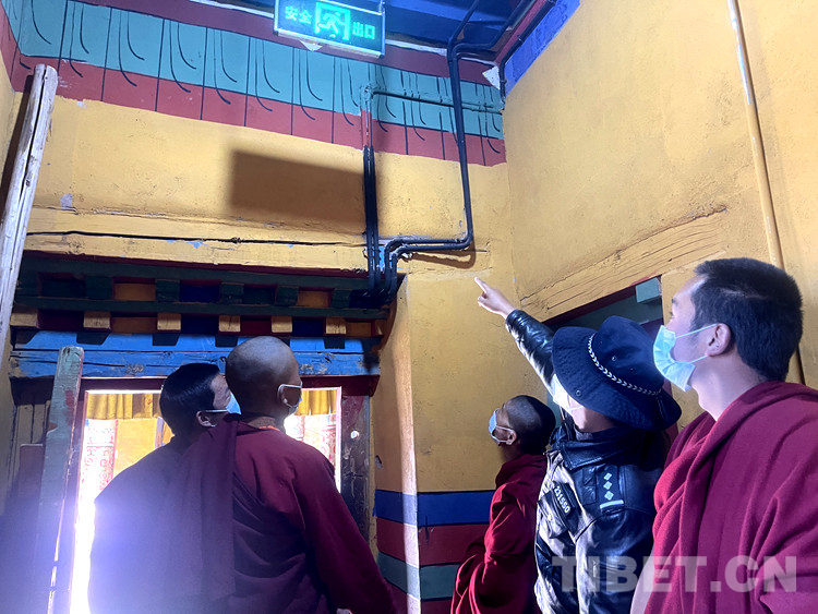 圖為俄爾寺管委會人員和參訓(xùn)僧尼深入各個殿堂、僧舍,逐一開展消防安全隱患大排查。