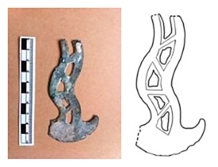 結(jié)合已有考古研究成果,余小洪分析稱,“高原絲綢之路”上的銅鉞形器,刃部受到云南不對(duì)稱形銅鉞的影響,不規(guī)則形鏤孔裝飾則受到青海省治多縣普卡貢瑪石棺墓牌飾的影響,是一種融合型新器物。
