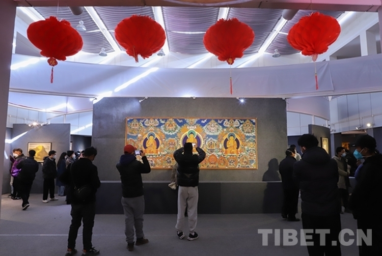 圖為第八屆“見即愿滿”西藏精品唐卡展開幕式現(xiàn)場