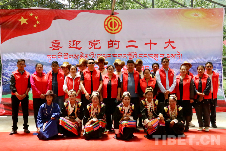 圖為朗縣各族干部群眾通過(guò)文藝演出喜迎黨的二十大