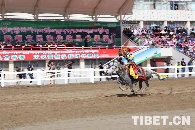 圖為入選2022中華體育文化優(yōu)秀節(jié)慶項目雪頓節(jié)民族傳統(tǒng)馬術表演