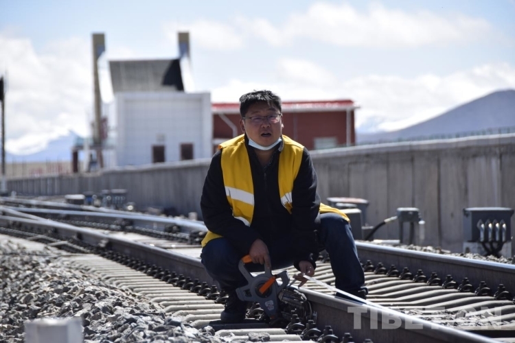 圖為王楨睿在工作中。供圖:青藏鐵路集團有限公司格爾木工務(wù)段,攝影:東科力加