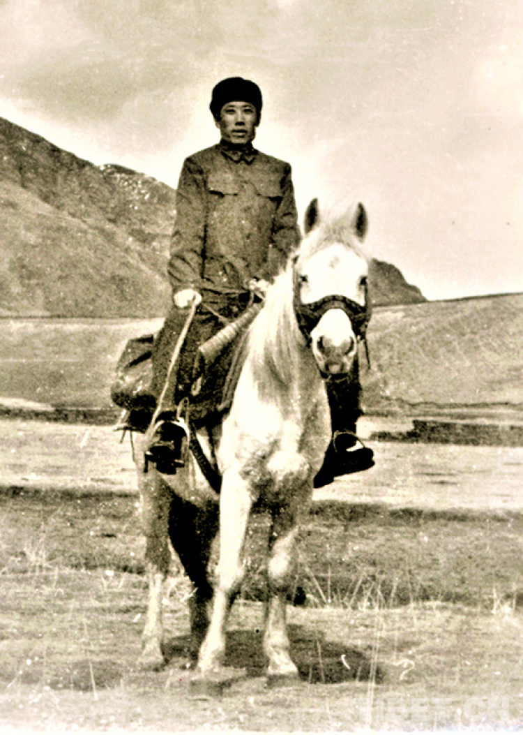 這是霍鐘權(quán)在藏北草原騎馬下鄉(xiāng)工作(唐召明提供,1965年攝)